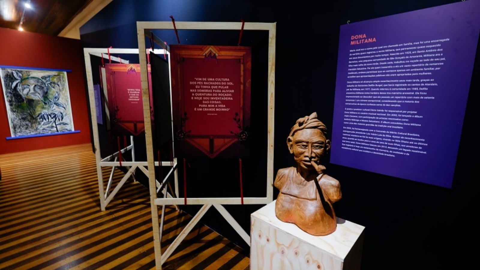 Inspirada no livro homônimo de Angela Almeida, publicado pela EDUFRN em 2024, a exposição propõe uma tradução estética das narrativas orais de Dona Militana. Como desdobramento da obra, a mostra reimagina sua linguagem visual através de um projeto expográfico assinado por Rafael Sordi e Marcos Paulo Pereira, que transforma conceitos literários em instalações tridimensionais, executadas em colaboração artística com Angélica Martins. Unindo memória, história e arte popular, a exposição incorpora elementos artesanais como as cerâmicas de José Santana, os cestos de Zé da Palha e Dona Benedita, e as flores de Deueuris Denis M. de Alencar.