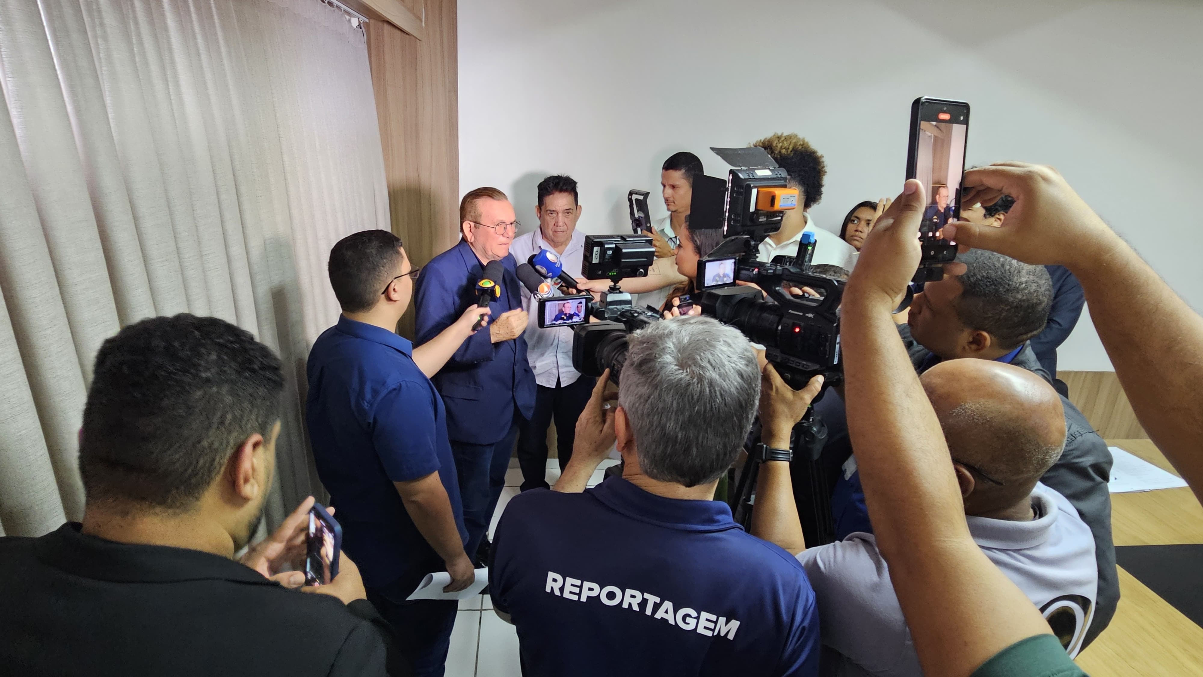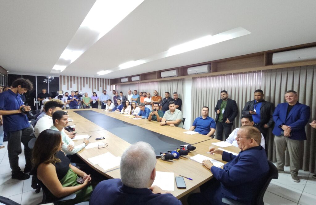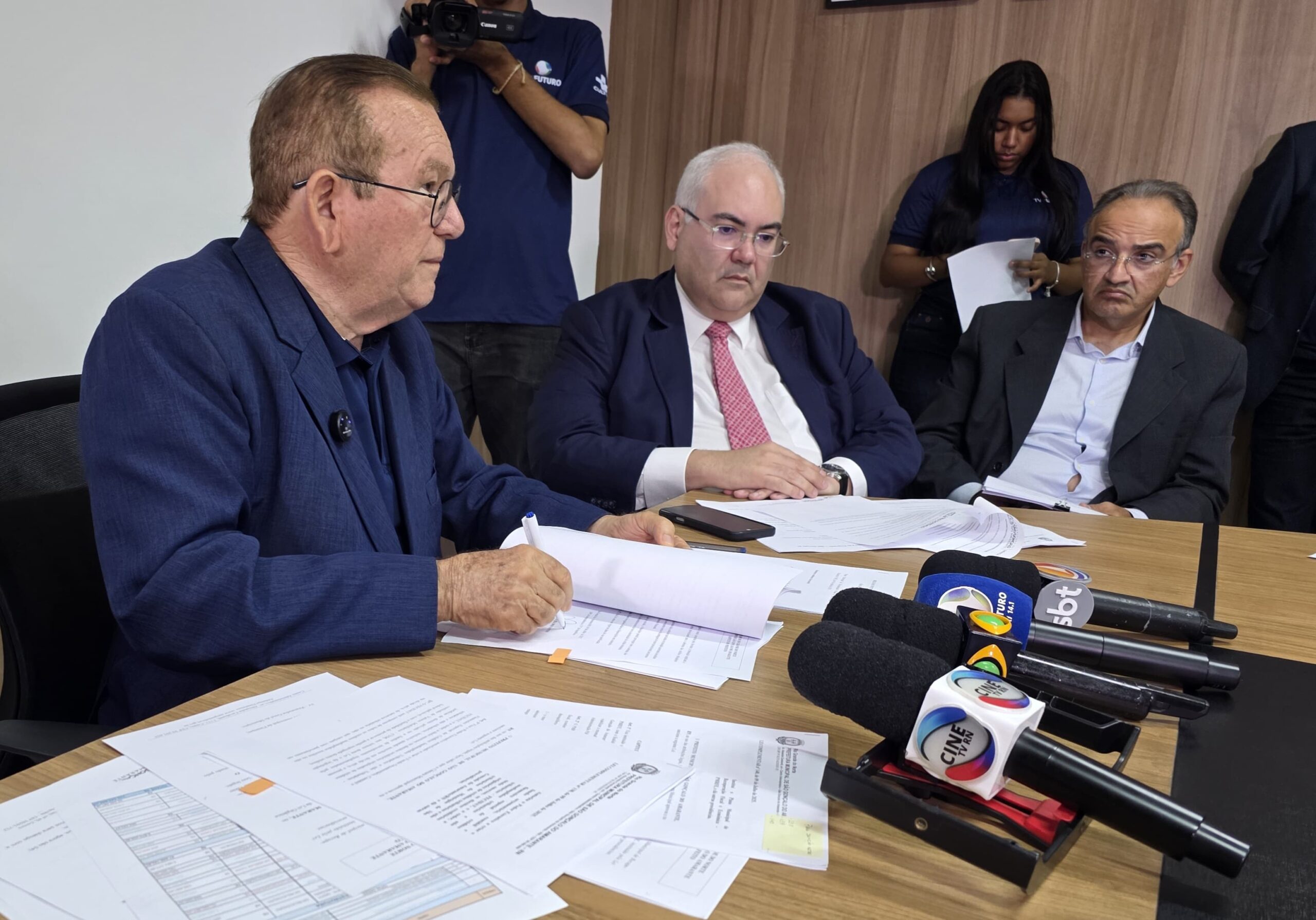 Em coletiva de imprensa realizada na tarde desta quarta-feira (9), no Gabinete Civil da Prefeitura de São Gonçalo do Amarante, o prefeito Jaime Calado apresentou um detalhado balanço dos seis primeiros meses de gestão e sancionou o Plano Municipal de Recuperação Fiscal e Econômica (PMRFE), um conjunto de medidas emergenciais para reorganizar as finanças do município, hoje marcado por um déficit herdado de R$ 220 milhões. O evento contou com a presença de secretários municipais, do presidente da Câmara, vereador Nonato Queiroz, técnicos da gestão e representantes da imprensa estadual e local.