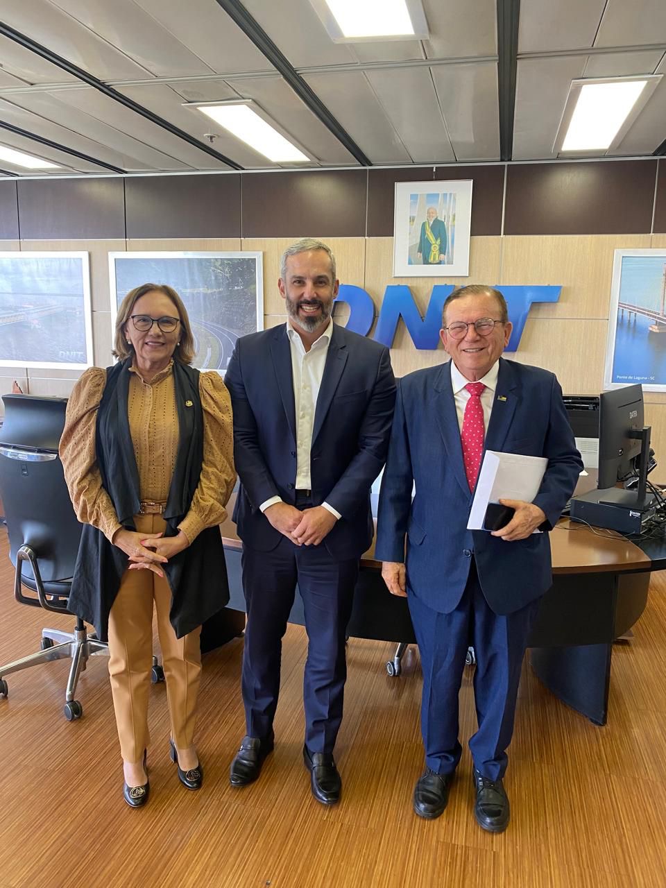 BRASÍLIA, DF – Em agenda oficial na capital federal, o prefeito de São Gonçalo do Amarante, Jaime Calado, ladeado pela senadora e primeira-dama do município, Zenaide Maia, conquistou um importante avanço para a infraestrutura e segurança viária da região. Em reunião com o Diretor-Geral do Departamento Nacional de Infraestrutura de Transportes (DNIT), o potiguar Fabrício Galvão, foi firmado o compromisso para a viabilização de quatro novas passarelas no trecho da BR-101 que liga o Rio Potengi à entrada da BR-406.